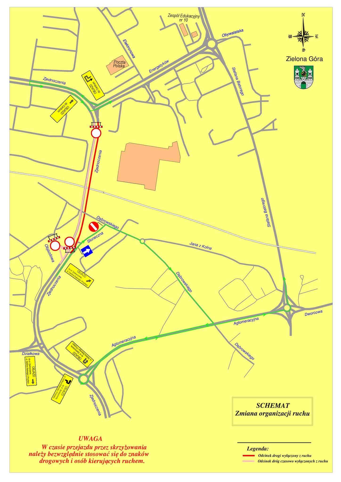 Na czas realizacji prac niemożliwy będzie przejazd wiaduktem w ciągu ul. Zjednoczenia oraz wyznaczone zostaną objazdy: