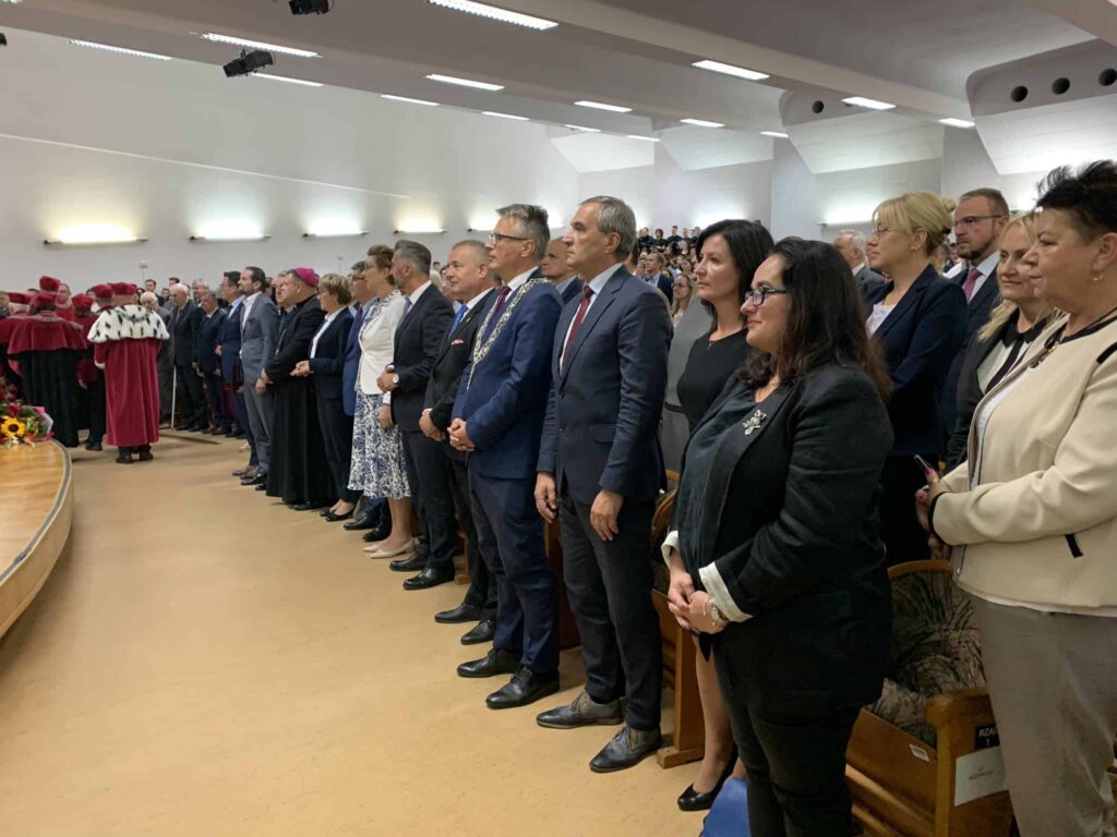 Kilka minut po godzinie 11:00 w auli Uniwersytetu Zielonogórskiego rozpoczęła się inauguracja nowego roku akademickiego 2023/24. W uroczystości wzięły udział władze uczelni, parlamentarzyści, władze miasta i regionu oraz studenci. Dla tych ostatnich, którzy rozpoczynają naukę na pierwszym roku najważniejszym momentem był akt immatrykulacji.