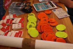 Na miejscu rozdawane są również apteczki dla uczestników, ulotki informacyjne i odblaskowe światła.