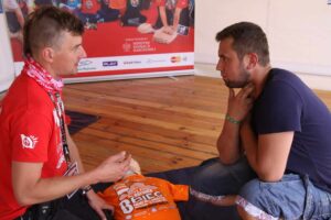 Ratowania życia uczą wyspecjalizowani instruktorzy pierwszej pomocy. Ich stanowisko jest pełne przechodniów, jedni chcą dowiedzieć się więcej o tego typu akcjach, inni przechodzą do konkretów i na fantomach uczą się m.in. resuscytacji. O zainteresowaniu Woodstockowiczów mówi Zuzanna Kupsik, która jest instruktorem pierwszej pomocy i od kilku lat współpracuje z Pokojowym Patrolem.