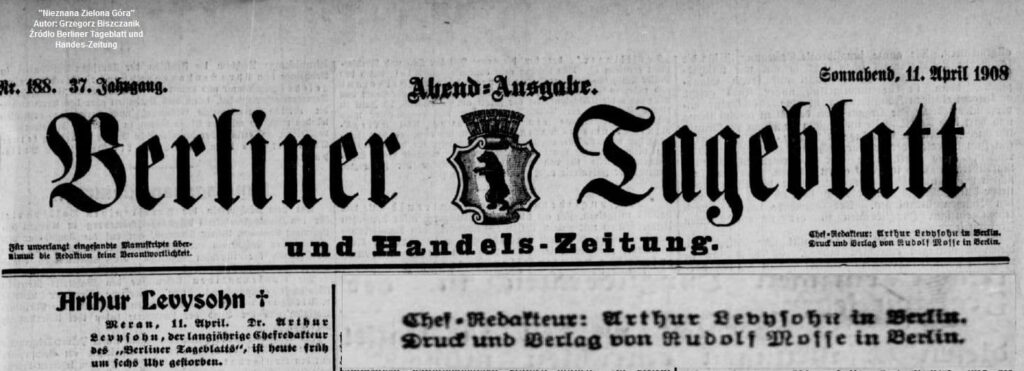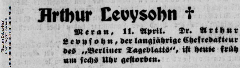 Historia grünberskiej rodziny Levysohnów – wydawców największego czasopisma przedwojennego miasta Grünberger Wochenblatt – jest dobrze znana. Wilhelm i Ulrich Levysohnowie bezapelacyjnie zapisali się na kartach miejskiej historii. Nie można jednak zapominać o Arthurze Levysohnie – jednym z najbardziej znanych dziennikarzy ówczesnej Europy.