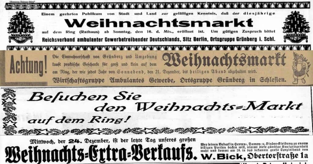 Na zielonogórskim Starym Rynku niedawno odbywał się jarmark bożonarodzeniowy. Niewielki targ świąteczny zapraszał w swe „progi” rozbłyskującymi się światełkami. Jak jednak wyglądały jarmarki w przedwojennym mieście?