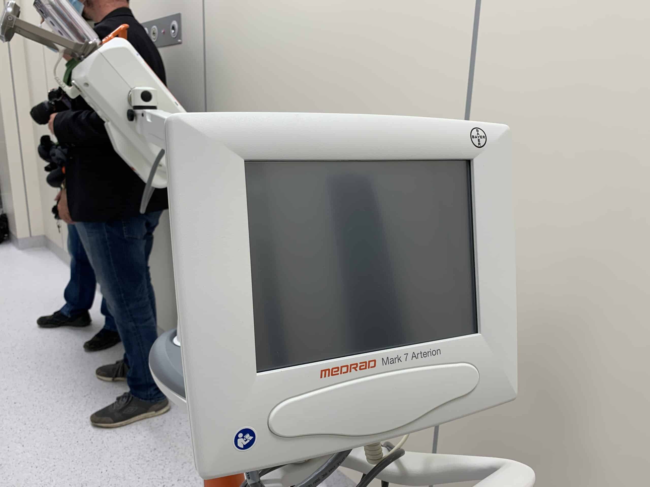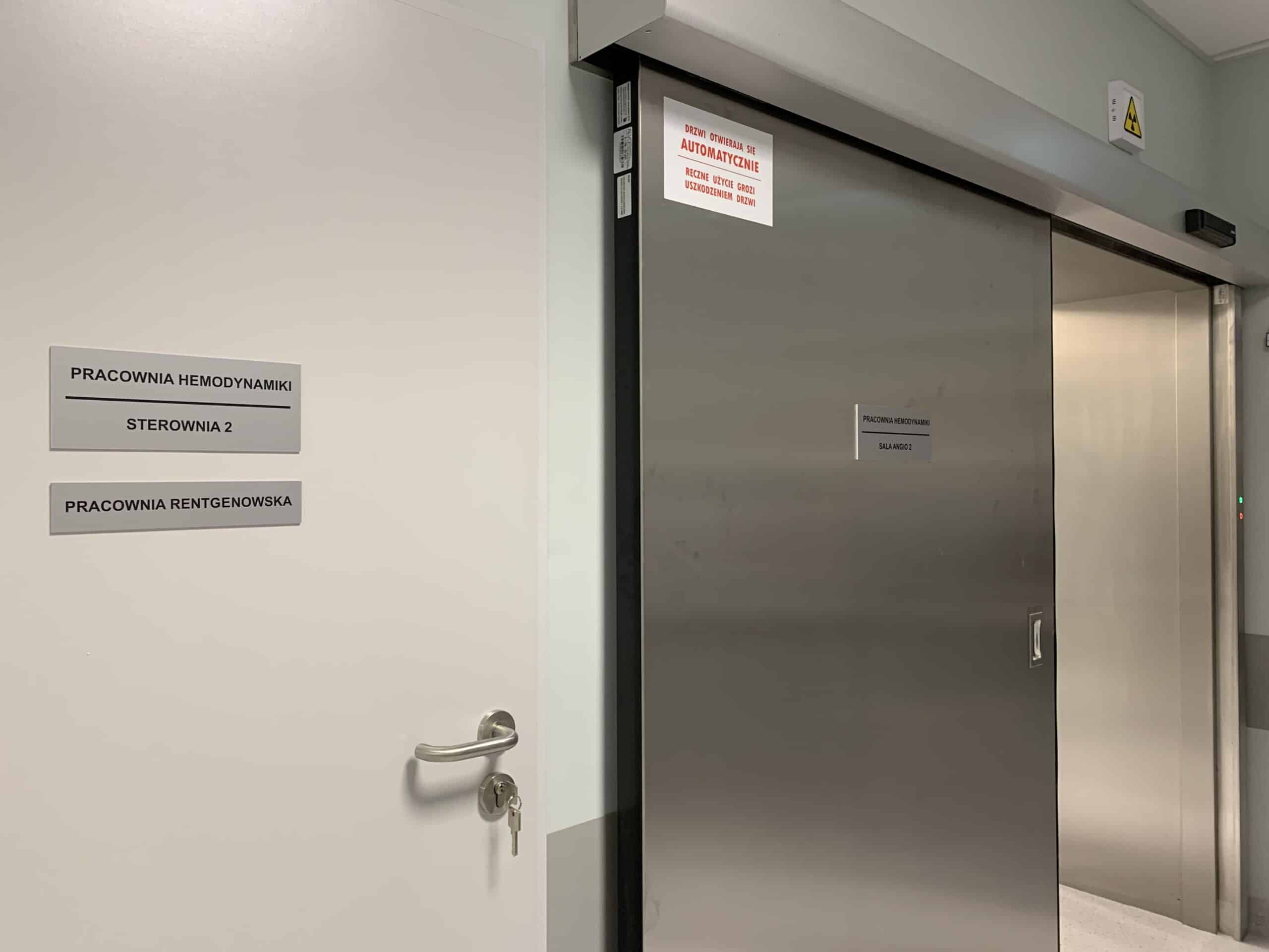 Na tej sali obwodowej jest podstawowe oprogramowanie kardiologiczne, a na sali kardiologicznej jest podstawowe oprogramowanie naczyniowe. W razie awarii jednego z angiografów można zamienić funkcję albo jeden może spełniać funkcję dwóch przez jakiś czas, dopóki ten uszkodzony nie zostanie naprawiony. Oprócz sali zabiegowej są dwie sterownie, w których siedzi technik. Steruje badaniem angiografem, to znaczy ustala pewne jego parametry, bo większość sterowania odbywa się już w środku. Jest też pomieszczenie, w którym lekarz i pielęgniarka przygotowują się „na czysto”, sterylnie do zabiegu.