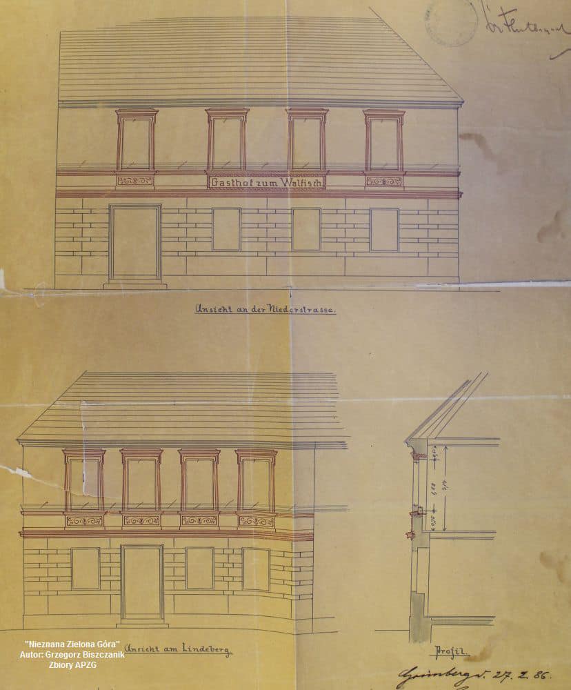 Lokal rozwijał się bardzo prężnie i był cały czas unowocześniany. W 1886 roku gospoda została przebudowana. Powiększono pomieszczenia jadalniane na dole budynku oraz zwiększono ilość pokoi sypialnych na piętrze. Zmieniła się także fasada, gdzie zastosowano boniowanie w przyziemiu oraz napis nad wejściami “Gasthof zum Walfisch”, a także zdobienia międzyokienne. Powstały dwa osobne wejścia od dwóch ulic.