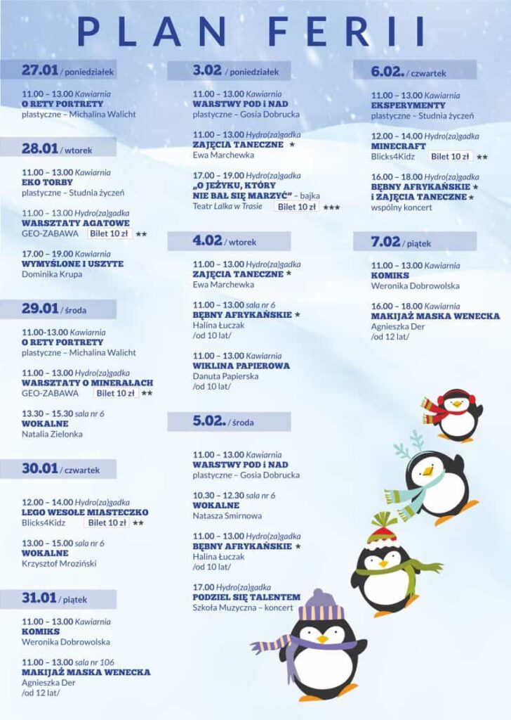 W ZOK-u odbędą się również warsztaty taneczne, komiksowe czy pokaz bajki dla dzieci. Atrakcje dla najmłodszych są zaplanowane do 7 lutego, jest więc zapewne z czego wybierać.