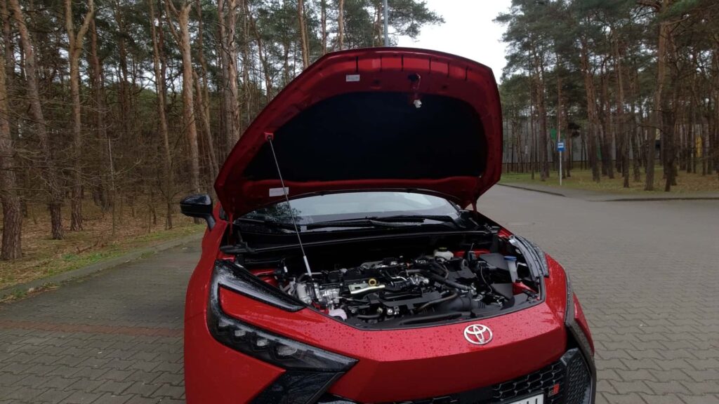 Wnętrze, to kolejna ze zmian, jaką dostrzegamy na pierwszy rzut oka. Toyota chwali się użyciem materiałów z recyklingu, a tych jest około dziewiętnastu. Do dyspozycji kierowca dostaje 12 calowy cyfrowy kokpit z możliwością konfiguracji. Na pokładzie mamy 8 calowy ekran multimediów z możliwością bezprzewodowej łączności za pomocą Apple Car Play i Android Auto. Fotele mają dobra trzymanie boczne, do tego zmieniła się kierownica. Za jej pomocą możemy sterować multimediami oraz ustawieniami pojazdu. Zdigitalizowany układ zegarów to krok w stronę przyszłości, jednak szkoda, że w ofercie nie ma już analogowych, a te w poprzedniej generacji miały sportowy charakter poprzez umieszczenie ich w tubach.