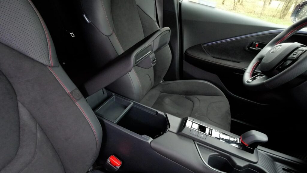Wnętrze, to kolejna ze zmian, jaką dostrzegamy na pierwszy rzut oka. Toyota chwali się użyciem materiałów z recyklingu, a tych jest około dziewiętnastu. Do dyspozycji kierowca dostaje 12 calowy cyfrowy kokpit z możliwością konfiguracji. Na pokładzie mamy 8 calowy ekran multimediów z możliwością bezprzewodowej łączności za pomocą Apple Car Play i Android Auto. Fotele mają dobra trzymanie boczne, do tego zmieniła się kierownica. Za jej pomocą możemy sterować multimediami oraz ustawieniami pojazdu. Zdigitalizowany układ zegarów to krok w stronę przyszłości, jednak szkoda, że w ofercie nie ma już analogowych, a te w poprzedniej generacji miały sportowy charakter poprzez umieszczenie ich w tubach.