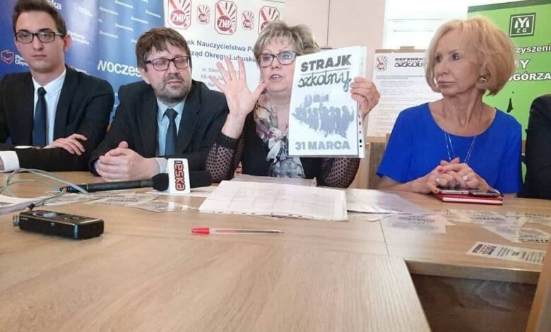 – Strajk trwa do godziny 15/15:30. Mamy przebywać na terenie placówki – może to być w pokoju nauczycielskim, w gabinecie. Możemy również wykonywać takie czynności, jak na przykład poprawienie klasówek, sprzątanie gabinetu. Natomiast nie jest to czynność, która wymaga udziału dydaktyki, opiekuństwa, czy innego działania ze strony nauczyciela, czy osób, które wzięły udział w strajku – mówiła Bożena Mania, prezes ZOL ZNP.