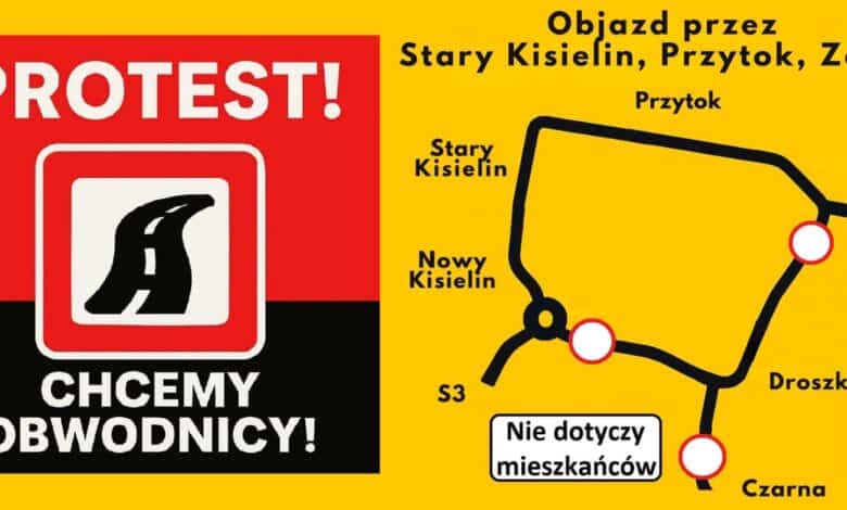 Pojazdy ciężarowe nie zostaną wpuszczone na blokowane odcinki dróg. Informacje o proteście i objazdach pojawią się już na rondzie w Kisielinie, na skrzyżowaniu Łaz-Przytok-Droszków oraz na skrzyżowaniu Czarna-Zabór-Droszków.