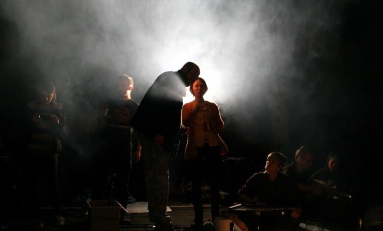 Mrowisko. Piękny słoneczny dzień, spieszę się na zajęcia ze scenografii. Wpadam do Dąbrówki i zatrzymuję się w pół kroku. Panuje nienaturalna cisza. Lekko uchylone drzwi ukazują panującą za nimi ciemność. Niepewnie wkraczam do środka. Potykam się w ciemności o nogi kolegów i koleżanek z grupy, widzę, że wszyscy siedzą w różnych pozycjach pod ścianą. W ciemności błyskają białka szeroko otwartych z ciekawości oczu zebranych. Siadam. Jako że jestem ostatnia, drzwi zostają zamknięte. Cisza. Nagle zaczyna jarzyć się żarówka, wyłaniając z ciemności jakiś kształt. Żarówka daje tylko tyle światła, żeby móc dojrzeć, że przed nami jest COŚ. Coś zaczyna niezbornie podrygiwać, szeleścić, szamotać się w zwolnionym tempie. Każdy ruch znamienny jest w szelest. Napięcie wśród zebranych sięga zenitu, postać przed nami konsekwentnie porzuca papierową powłokę. Żarówka żarzy się coraz mocniej, już jesteśmy w stanie dostrzec zarys sylwetki. I oto przed nami staje prowadzący zajęcia. Zapalają się światła i teraz możemy przejść do dalszej części zajęć.