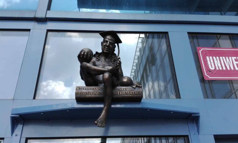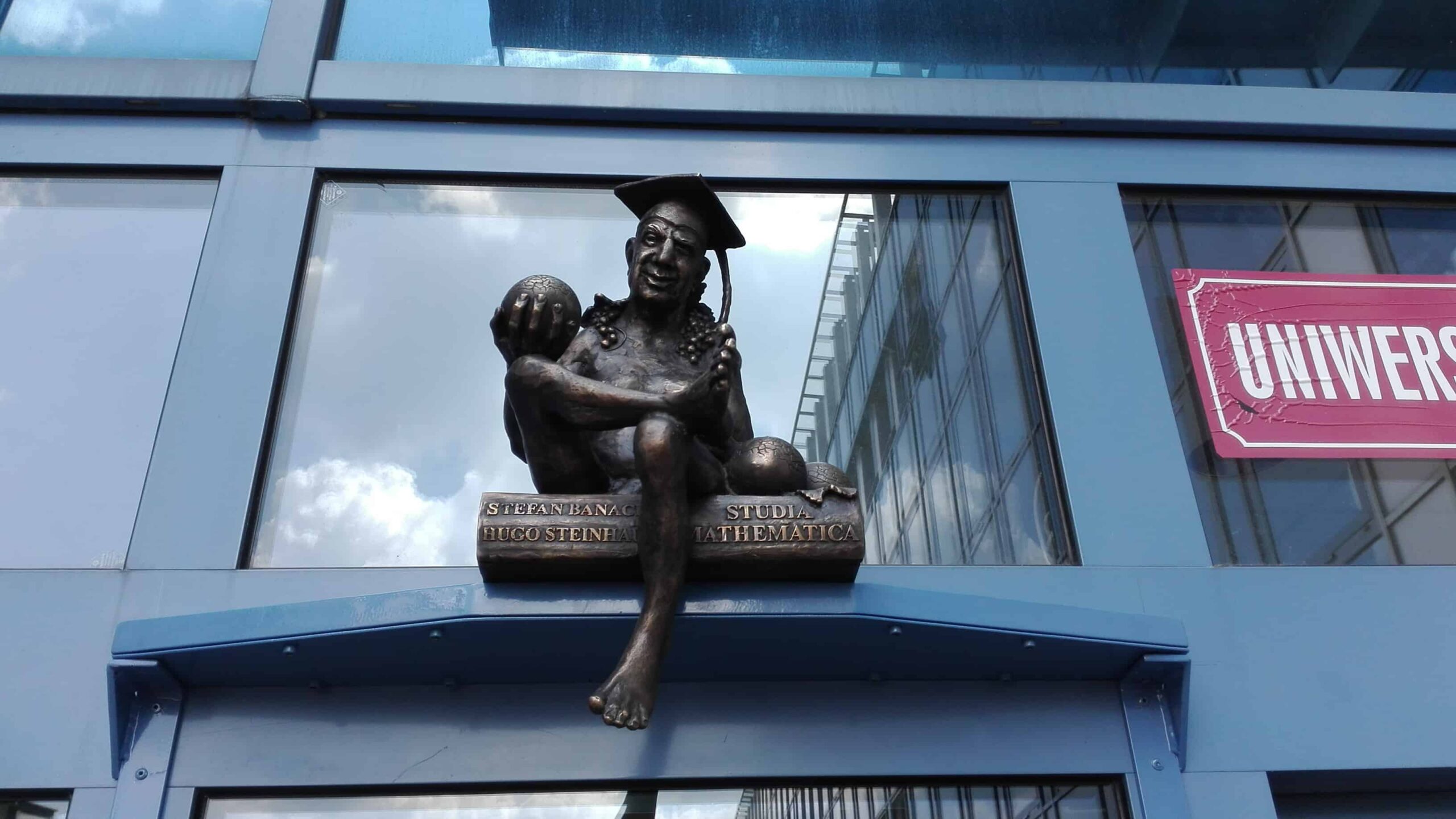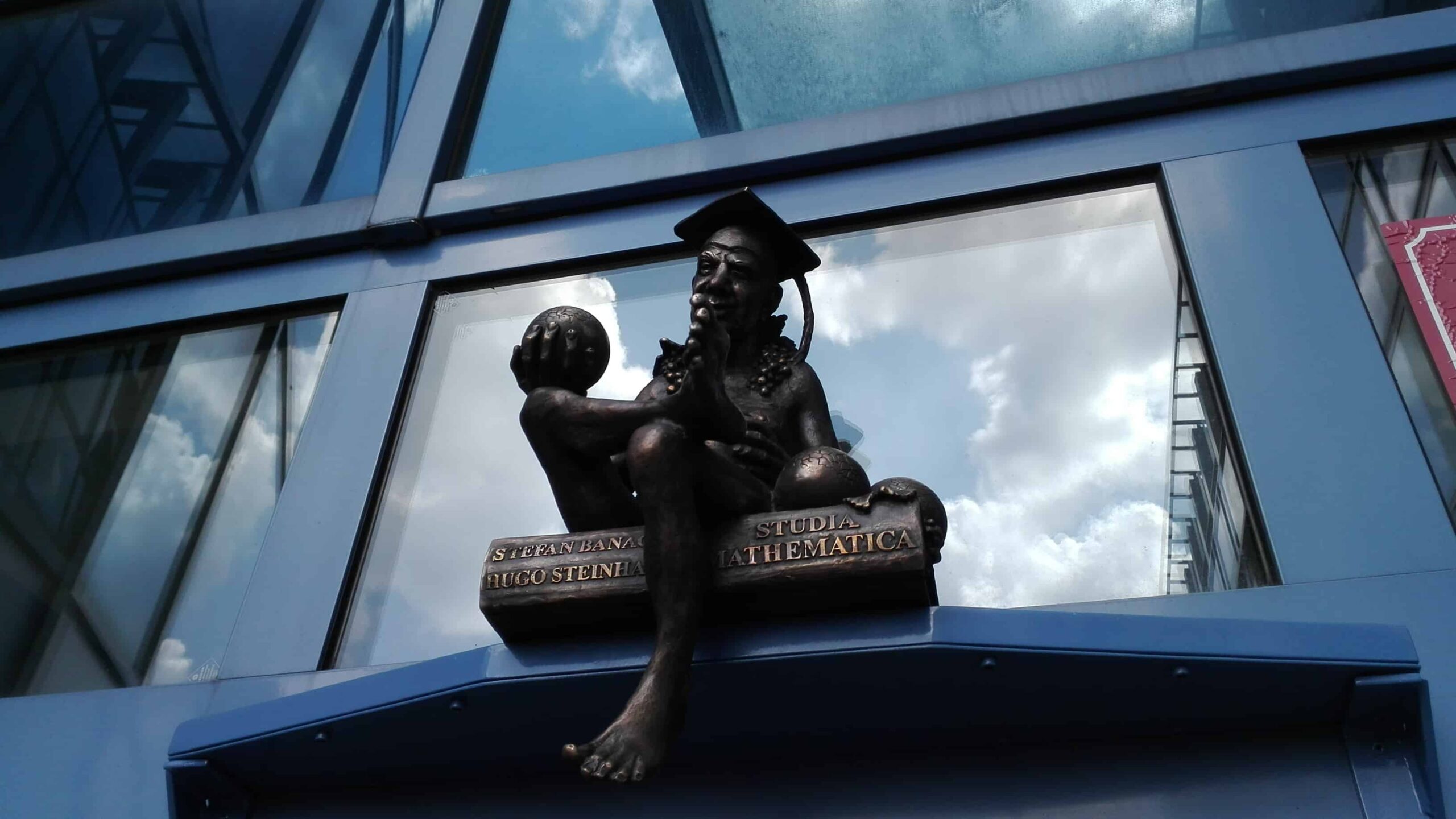 Figurka Banachusa prezentuje więc zagadkę matematyczną, a w dodatku siedzi na księdze podpisanej nazwiskiem Stefana Banacha i Hugona Steinhausa. Byli to przedstawiciele tzw. lwowskiej szkoły matematycznej.