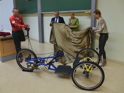 Studenci Instytutu Inżynierii Mechanicznej mają się czym chwalić. W piątek z ich hali warsztatowej wyjechał prototyp roweru trójkołowego typu „Handbike”. Innowacyjny pojazd rowerowy powstał pod kierownictwem mgr inż. Zdzisława Wałęgi.