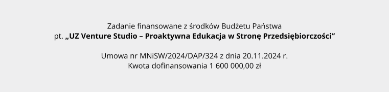 Zadanie jest finansowane ze środków Budżetu Państwa w ramach umowy “UZ Venture Studio – Proaktywna Edukacja w Stronę Przedsiębiorczości”.