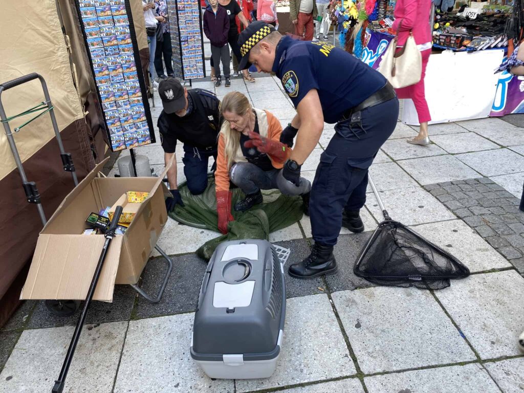 Zwierzę przechadzało się między straganami. Zajęły się nim służby weterynaryjne i straż miejska. Zdjęcia wykonał Marcin Grzegorski.