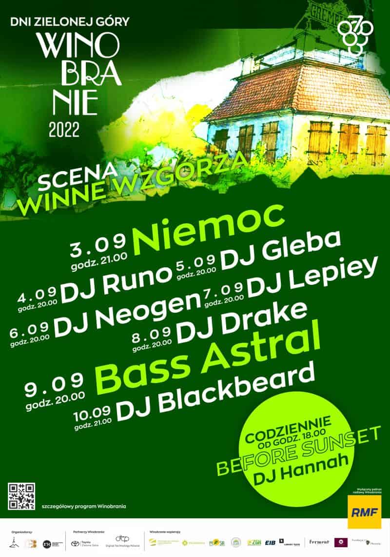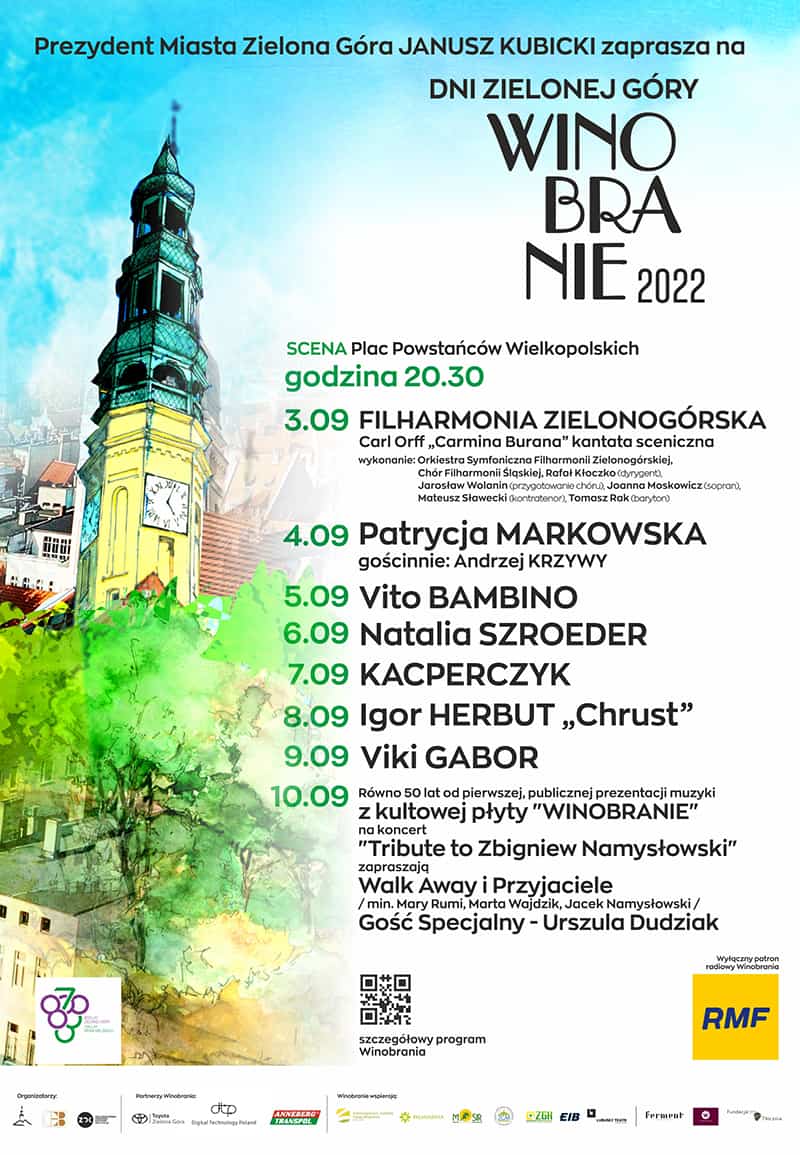 Korowód rozpocznie się w południe. Podczas tego wydarzenia klucze do bram miasta zostaną zwrócone przez Bachusa prezydentowi Zielonej Góry. Później sceny opanują artyści. Gwiazdą wieczoru będzie Urszula Dudziak, która nim zaśpiewa, odsłoni sobie poświęcony mural na kamienicy przy Al. Wojska Polskiego.