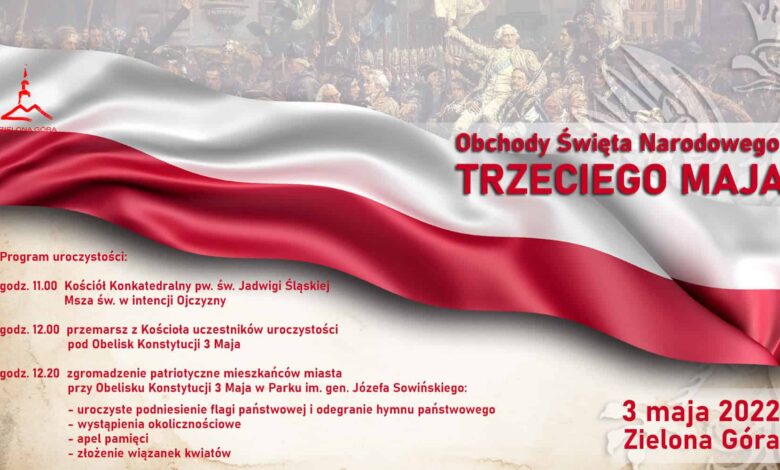 W Zielonej Górze uroczystości rozpoczną się od mszy św. w intencji ojczyzny w konkatedrze Św. Jadwigi o 11:00, po niej nastąpi przemarsz w kierunku obelisku Konstytucji 3 Maja w Parku przy ul. Sowińskiego. Tam wystąpienia okolicznościowe, apel pamięci i złożenie wiązanek kwiatów.