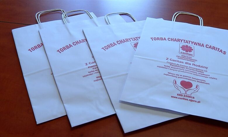Białe, papierowe i z czerwonym logiem Caritas – jak co roku, tak i teraz wyglądają torby pomocowe. Pomocowe, bo to właśnie do nich można włożyć różnego rodzaju artykuły spożywcze, środki czystości i kosmetyki dla osób potrzebujących.