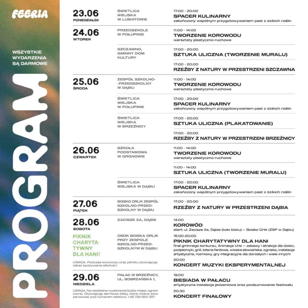 Jeśli festiwal to i muzyka? Niekoniecznie, bo podczas “Feerii” dowiecie się, czym są rezydencje artystyczne i jakie warsztaty z lokalną społecznością poprowadzą artyści różnych dziedzin. To wydarzenie w ostatnim tygodniu czerwca w Dąbiu.
