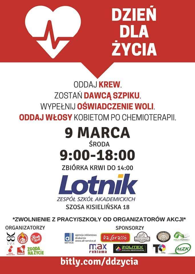 Dzień dla Życia w zielonogórskim „Lotniku” odbędzie się w środę, 9 marca w godzinach 9:00-18:00. Krew można natomiast oddać do godziny 14:00. Więcej informacji o akcji i zapisy na stronie http://damianbaczkiewicz.wix.com/dziendlazycia.