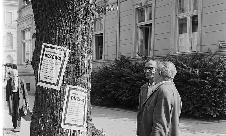 Jednej, październikowej nocy 1975 r., wszystkie drzewa al. Niepodległości, z kilku stron, zostały oplakatowane klepsydrami o treści „Zawiadamiam o tragicznej śmierci DRZEWA zasłużonego dla zdrowia i urody miasta, niezastąpionego Przyjaciela Człowieka, które po długiej chorobie nie otrzymawszy żadnej pomocy zginęło na oczach przechodniów zatrute spalinami i pyłami zabetonowane na śmierć! Pogrążona w głębokim smutku ALEJA NIEPODLEGŁOŚCI”.