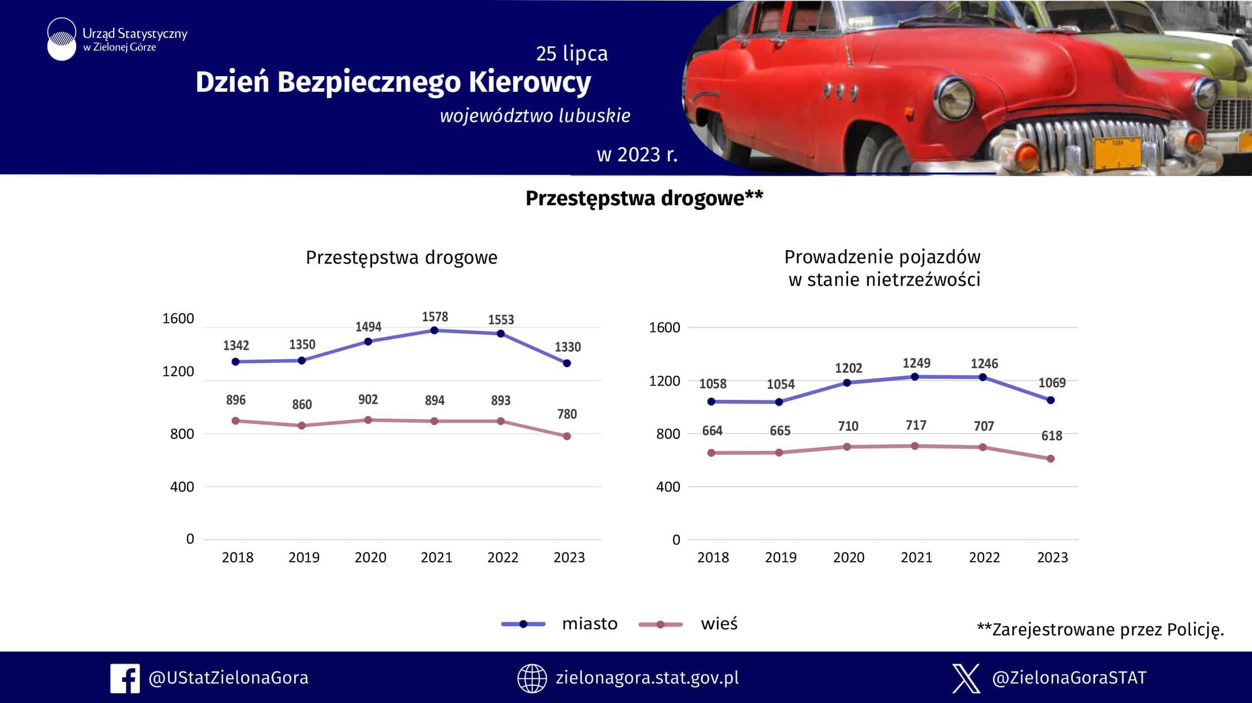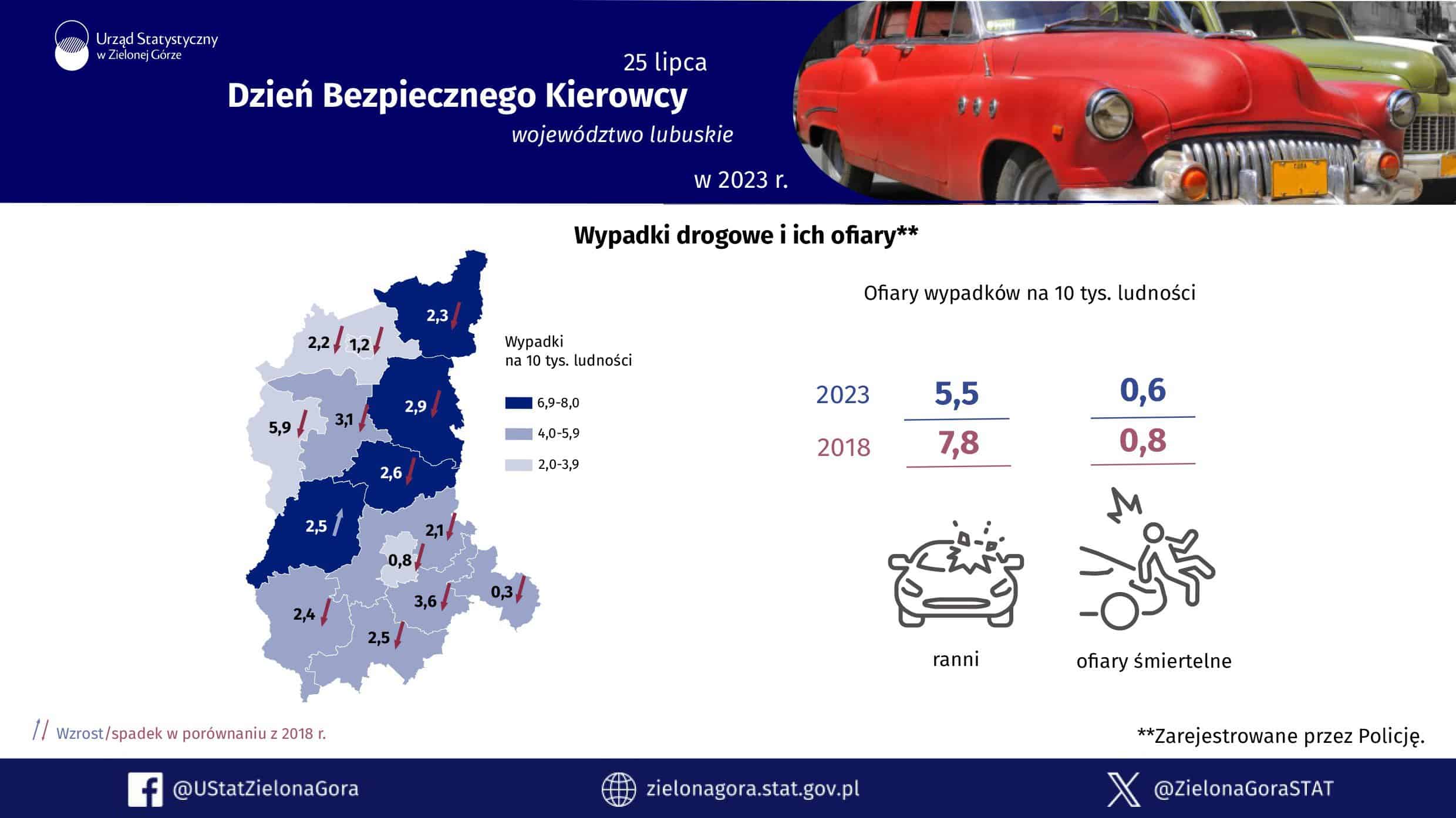 25 lipca to Dzień Bezpiecznego Kierowcy. Z tej okazji Urząd Statystyczny w Zielonej Górze przygotował podsumowanie, pokazujące jak przez ostatnie 5 lat zmieniła się drogowa sytuacja w naszym regionie.