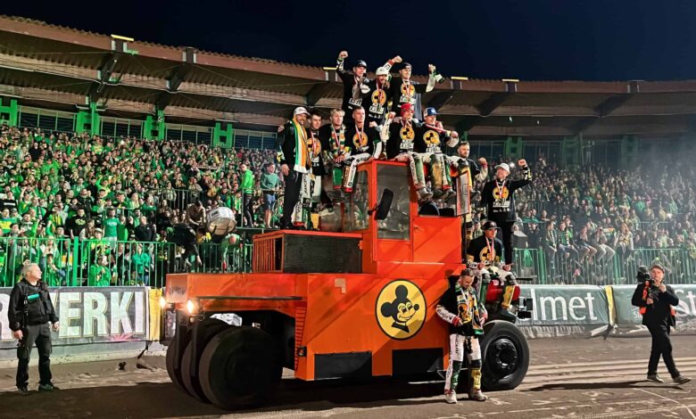 Takiego świętowania nie powstydziliby się nawet w PGE Ekstralidze, do której po dwuletniej przerwie wracają żużlowcy Enei Falubazu. Zielonogórzanie wygrali wszystkie spotkania w sezonie, w tym ostatnie z ROW-em Rybnik 58:32.