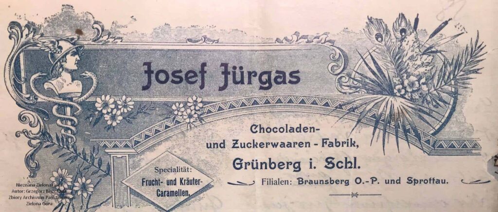 Początkowo nie była to duża fabryka i specjalizowała się w… produkcji karmelków owocowych i ziołowych. Biznes jednak musiał się dobrze rozwijać, bo już w 1900 roku Jürgas wybudował na swojej działce okazałą willę z siedmioma pokojami. Zaczął też rozbudowywać swoją firmę. W tym czasie grünberskie czekolady zdobywały wiele nagród i wyróżnień na dolnośląskich targach żywności, a fabryka posiadała nawet swoje filie w Szprotawie i Braniewie.