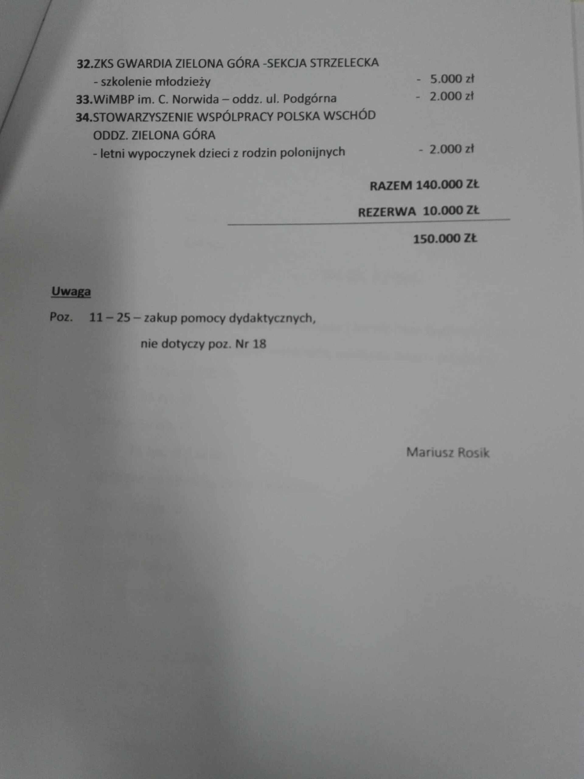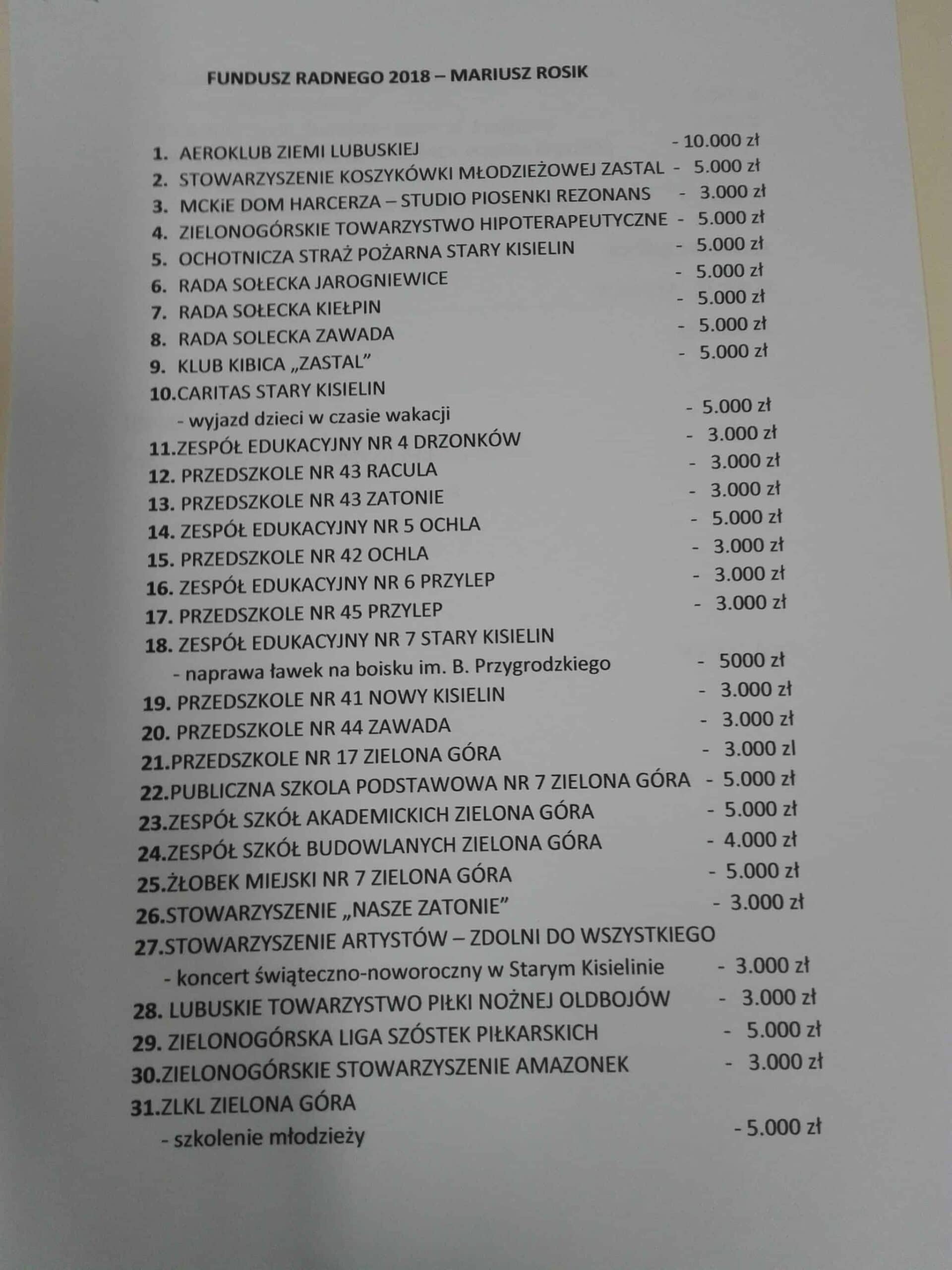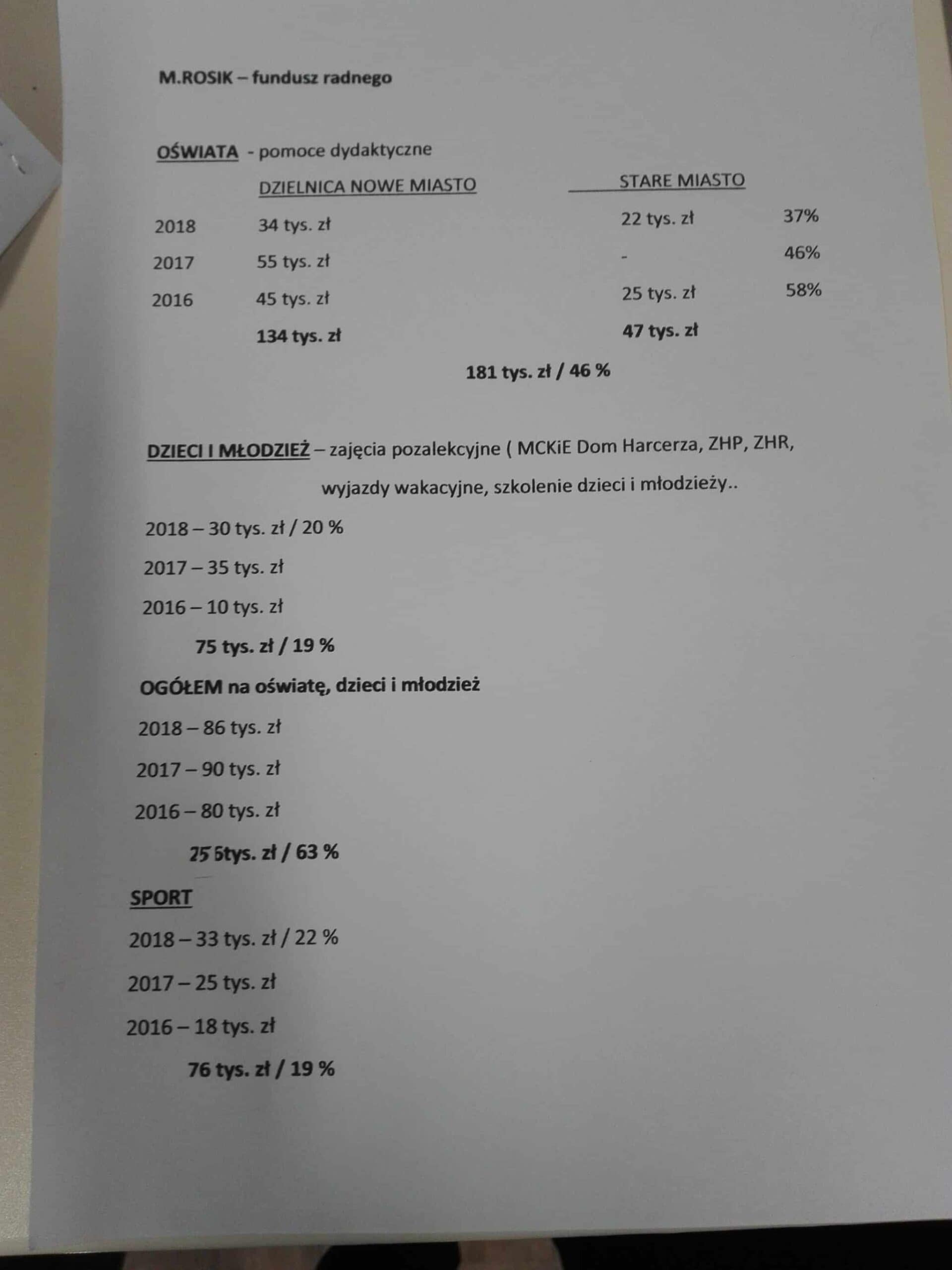 Poniżej zestawienie wydatków Mariusza Rosika z puli, którą dysponuje jako radny.
