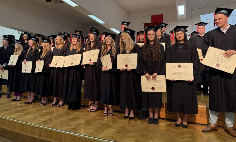 68 absolwentów z satysfakcją i radością wyrzuciło dziś w górę swoje birety. Padło wiele ciepłych, ale także motywujących słów. Władze uczelni życzyły studentom prawa wytrwałości, realizacji celów i tylko właściwych orzeczeń. Choć dyplomy nie tylko przysłużą się jedynie mecenasom czy sędziom, bo jak absolwenci sami przyznawali będą także pracować w administracji urzędów czy korporacji. Specjalne podziękowania otrzymały starościny grup. To one dbały o swoich uczelnianych kolegów gdy brakowało dyscypliny. Więcej w relacji wideo.