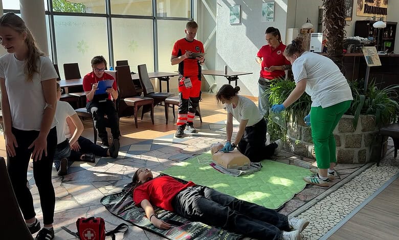 Na każdej scence mają określony czas. Są to różne urazy, w zależności od scenki. Jest oczywiście też fantom, każdy uczestnik musi wykonać RKO. Na jednej scence o nazwie “impreza” mamy ciało obce, poparzenie, jest też krwotok z nosa, więc jest co robić.