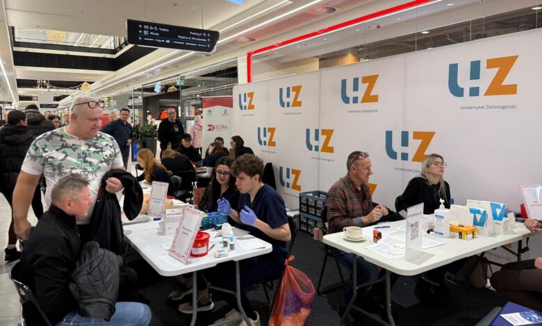USG jąder, testy PSA, pomiary cukru i ciśnienia, konsultacje fizjoterapeutyczne oraz szybkie testy na choroby zakaźne — tak wygląda finał akcji „Zdrowie pod Kontrolą” w zielonogórskiej galerii Focus Mall. Wydarzenie, połączone z kampanią Movember, przyciągnęło tłumy panów, którzy ustawiają się w długich kolejkach po darmowe badania.