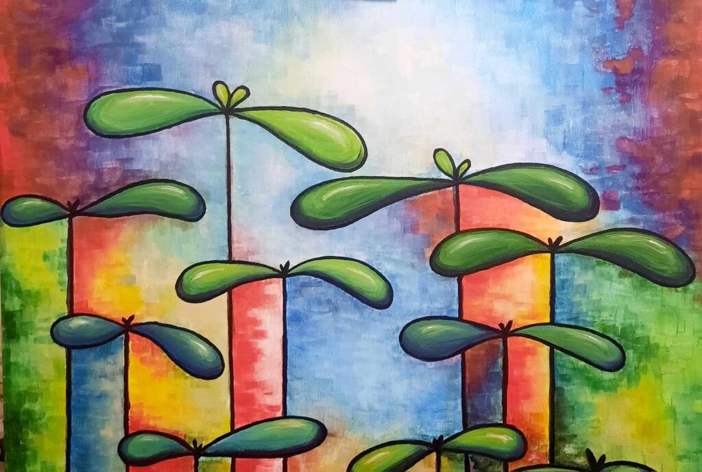 Inspiruję się głównie przyrodą. Ona najbardziej trafia mi do serca. Bardzo lubię ją obserwować na różnych spacerach. Forma, kolory, tajemnica życia, która jest zawarta w przyrodzie najbardziej mnie pobudza i wywołuje u nie jakąś potrzebę ekspresji, pokazania tego. Dlatego też dużo zabawy z kolorem. Mają te obrazy moje wywoływać również jakieś emocje, przede wszystkim pozytywne. Chciałabym żeby ludzie mieli w sobie jak najwięcej radości.