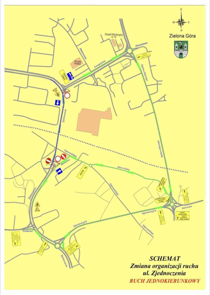 Urząd miasta informuje, że ruch na czynnym wiadukcie zachodnim (w stronę ronda PCK) będzie odbywał się jednokierunkowo. Przejazd będzie możliwy wyłącznie od strony Przylepu w kierunku centrum. W kierunku przeciwnym wyznaczone zostaną objazdy zgodnie z załączonym schematem, a ruch jednokierunkowy zostanie wprowadzony również na ul. Słonecznej.