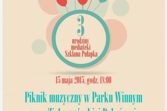 Mediateka Szklana Pułapka zaprasza mieszkańców Zielonej Góry i nie tylko na muzyczny piknik z okazji 3. urodzin. Będzie to impreza skupiona na zrelaksowaniu się na świeżym powietrzu wylegując się na leżaku lub kocu. Atmosferę umilą dźwięki muzyki, którą zapewnią DJ-e z klubu One Love. Ponadto będzie można poszukać nowych ciał niebieskich z Polskim Towarzystwem Miłośników Astronomii.