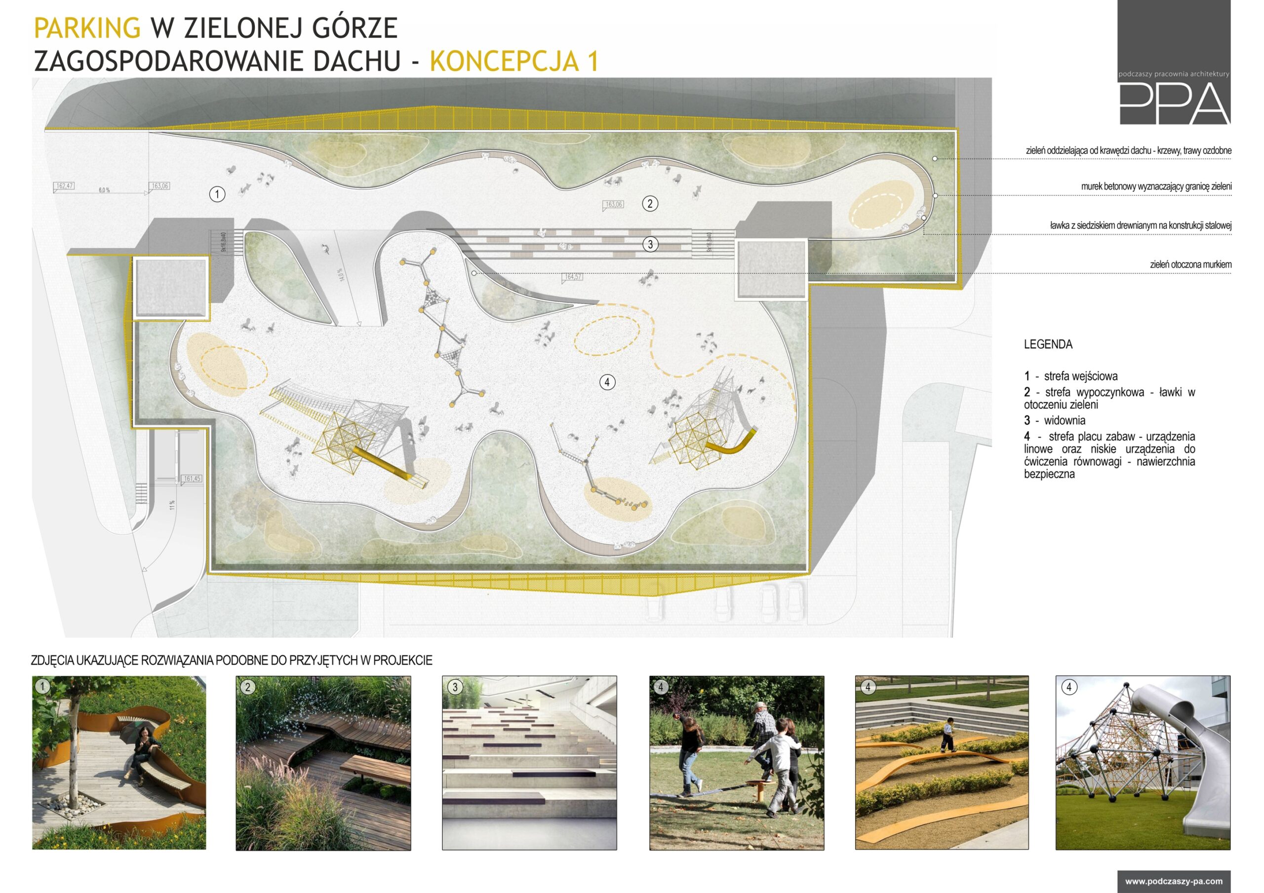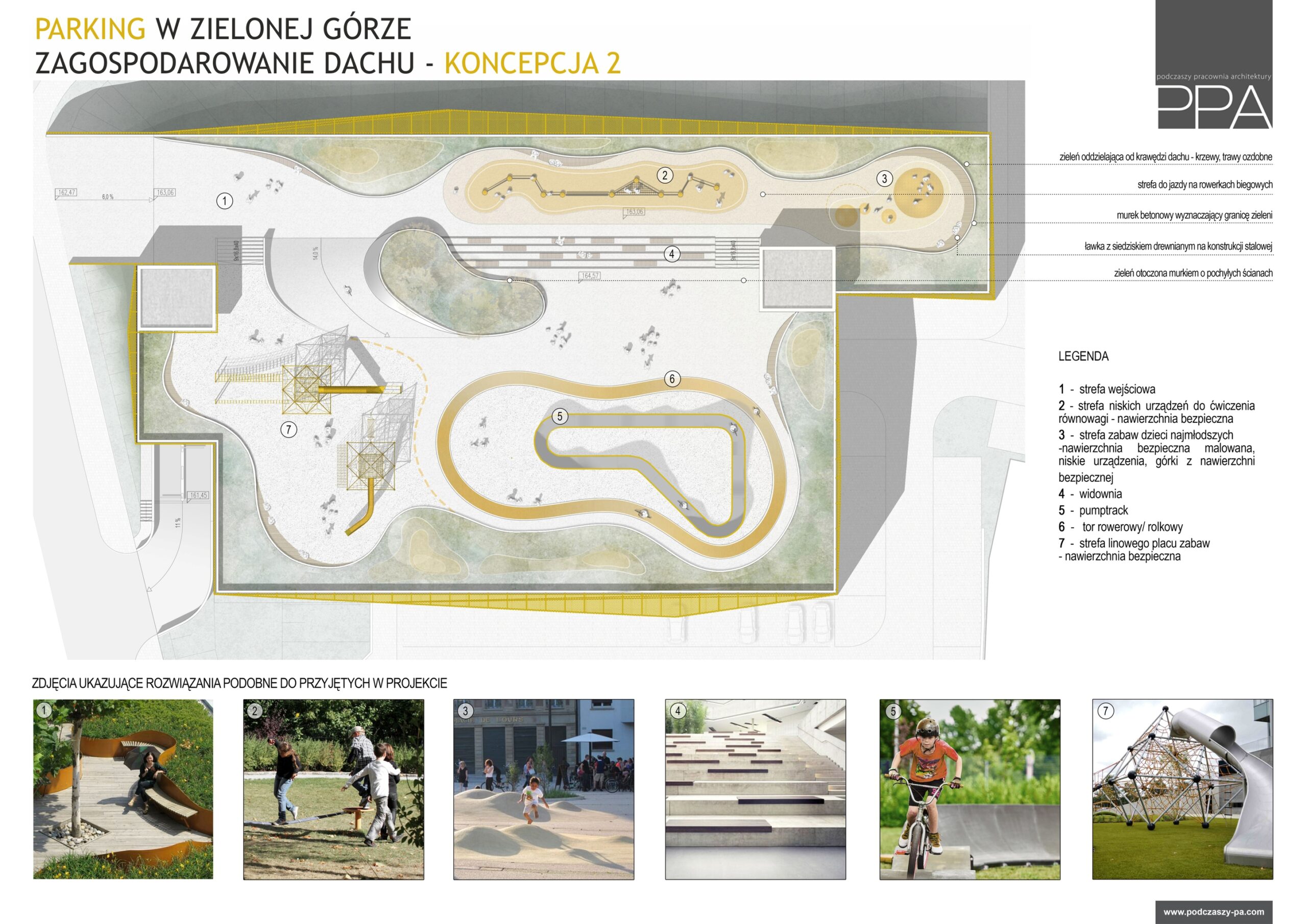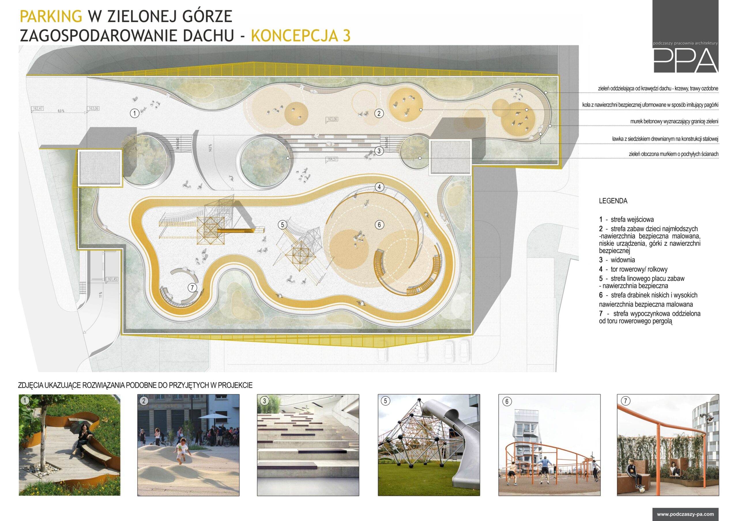 Do wyboru jest jeden spośród trzech projektów. Każdy dotyczy placu zabaw na dachu, ale różni się detalami. Dwie wizualizacje przewidują np. budowę toru rolkowego, trzecia obejmuje strefę wypoczynkową, widownię i urządzenia do ćwiczenia równowagi.
