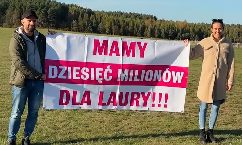 Rodzice Laury efektowny baner zaprezentowali z hasłem o zebraniu potrzebnej kwoty zaprezentowali na lotnisku w Przylepie. Film jest w mediach społecznościowych. – Nie znamy się wszyscy osobiście ale czujemy się, jakbyście byli naszą rodziną. (…) Przed nami jeszcze długa droga, ale z taką armią dobra wierzymy, że wszystko się uda. Prosimy – zostańcie z nami do końca – napisali rodzice dziewczynki na Facebooku.