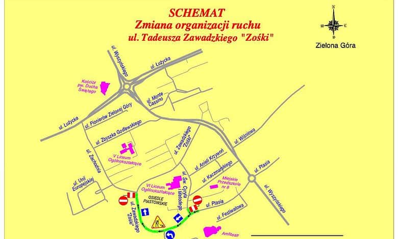 Utrudnienia w ruchu drogowym w Zielonej Górze. Mają one związek z remontem ul. Zawadzkiego “Zośki”, części ulicy Ptasiej oraz ulicy Prostej. Jak informuje Departament Zarządzania Drogami – prace ruszyły i należy dostosować się do nowej organizacji ruchu.