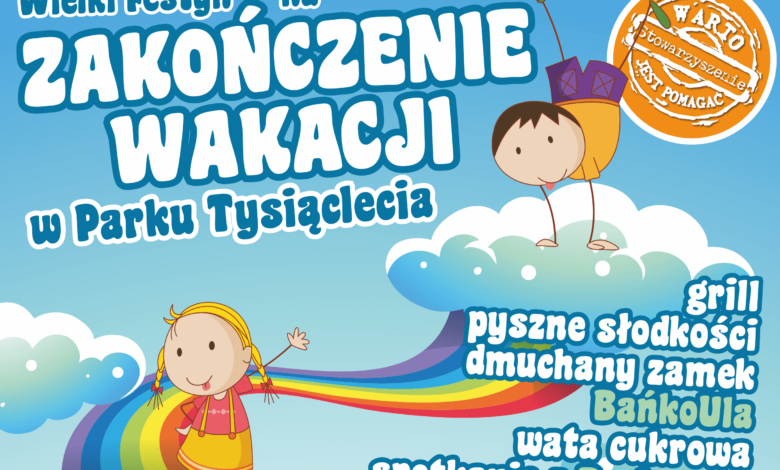 Koniec wakacji coraz bliżej. Zanim jednak dzieci powrócą do szkolnych ławek i przedszkolnych sal – czeka na nie jeszcze wielka impreza. Chodzi o festyn na zakończenie wakacji, a ten już dziś w Parku Tysiąclecia – tuż obok siedziby Stowarzyszenia Warto jest Pomagać.