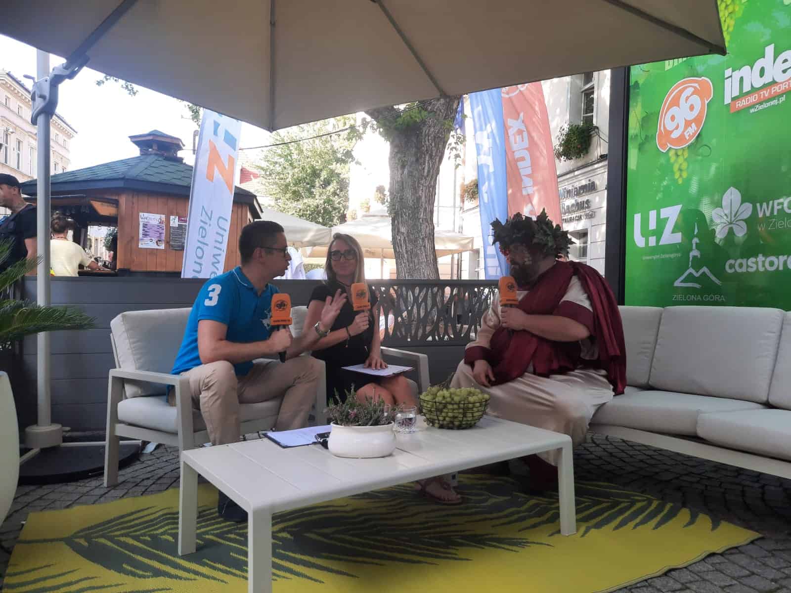Kaja Rostkowska i Maciej Noskowicz jako pierwsi mieli przyjemność poprowadzić tegoroczne Winobranie – Winogranie. Plenerowe studio Radia Index stanęło przed ratuszem.