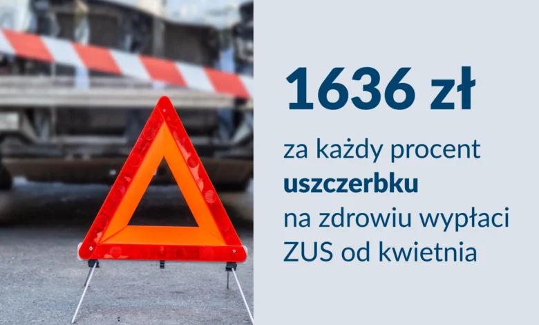 Nowa kwota jednorazowego odszkodowania za stały lub długotrwały uszczerbek na zdrowiu powstał w wyniku wypadku przy pracy. Od 1 kwietnia za każdy procent uszczerbku na zdrowiu Zakład Ubezpieczeń Społecznych wypłaci 1636 zł. To więcej o 205 zł niż do tej pory.