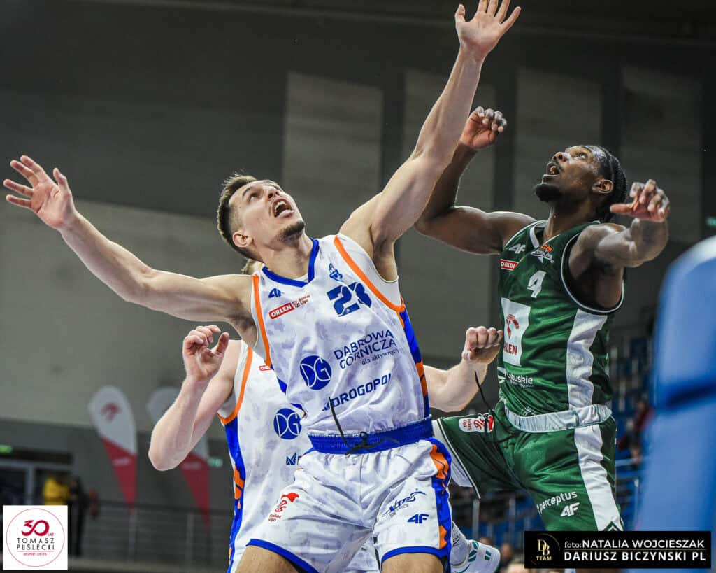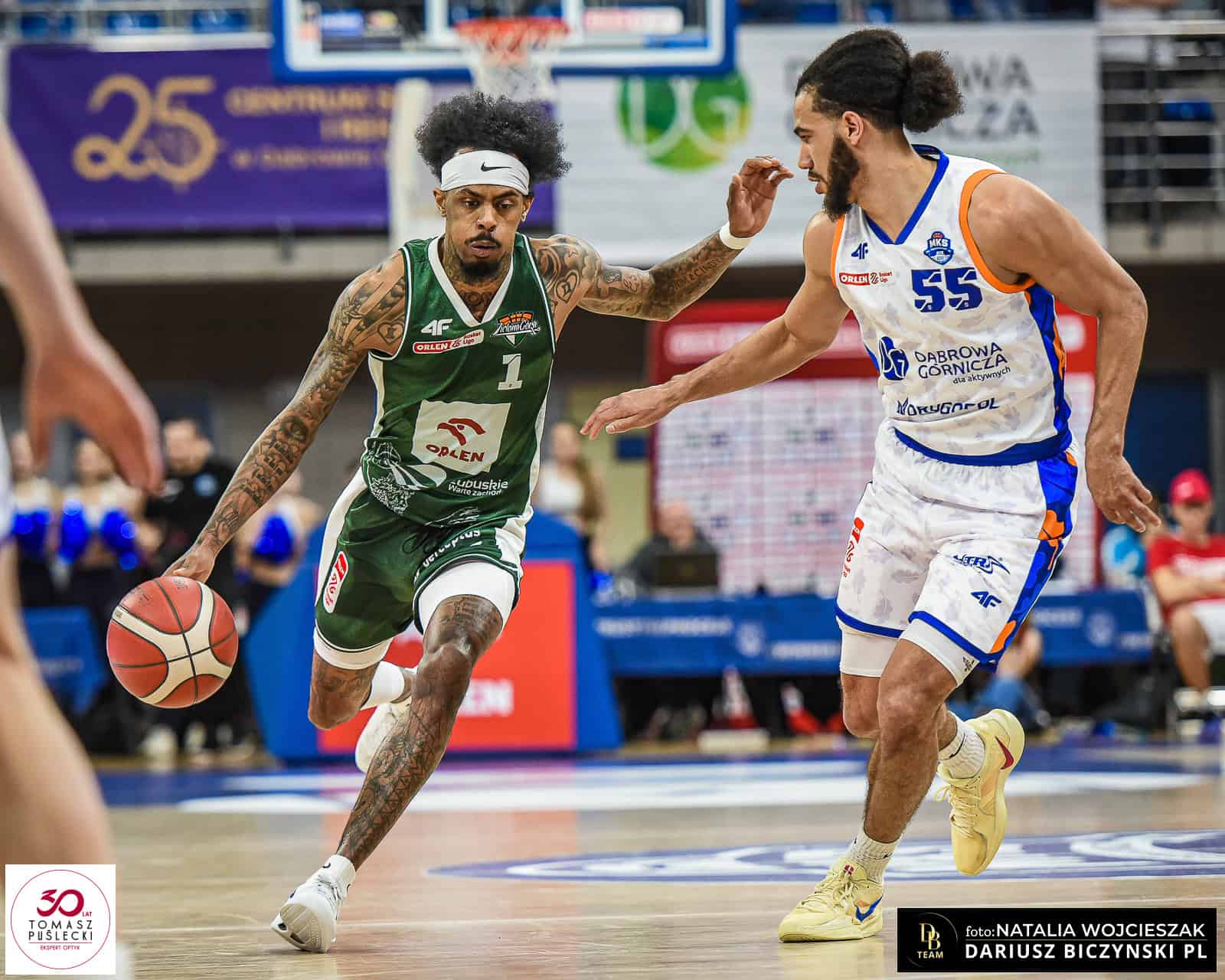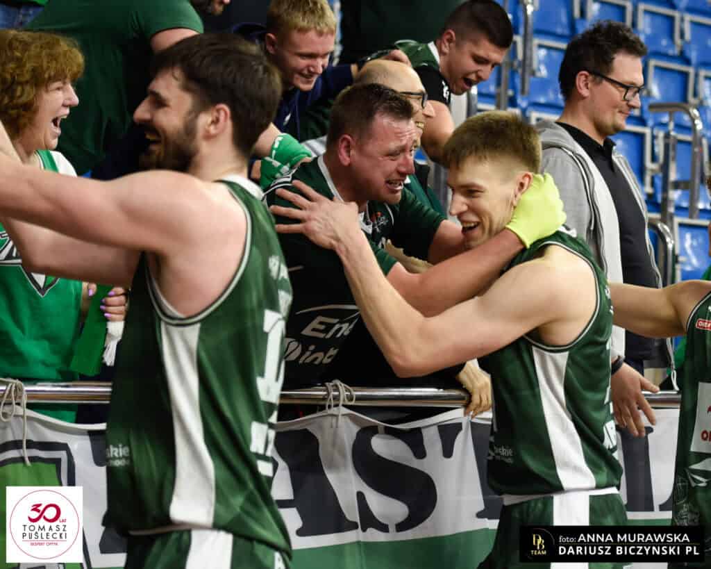 Stawka i nerwy udzielały się jednym i drugim, efektem czego były błędy po obu stronach. Minutę przed końcem też mieliśmy remis, wówczas ważny przechwyt zanotował Ty Nichols. Najlepszy zawodnik Zastalu w Dąbrowie po chwili był faulowany i wykonał dwa celne rzuty wolne. Zielonogórzanie prowadzili 89:87. W kolejnej akcji faulowany był Mattias Markusson. Szwed trafił raz i zielonogórzanie będąc na jednopunktowym prowadzeniu mieli piłkę, pół minuty przed końcem. Punktów z akcji nie było, ale po niecelnym lay-upie Filipa Matczaka najpierw odbyła się walka o piłkę w parterze, a po tym na kosz Zastalu ruszył m.in. Jan Wójcik i choć doszło między nim, a Michałem Sitnikiem do kontaktu, sędziowie orzekli, że zdarzenie miało miejsce już po końcowej syrenie. Nie było więc rzutów wolnych gracza gospodarzy tylko wybuch radości zielonogórzan!