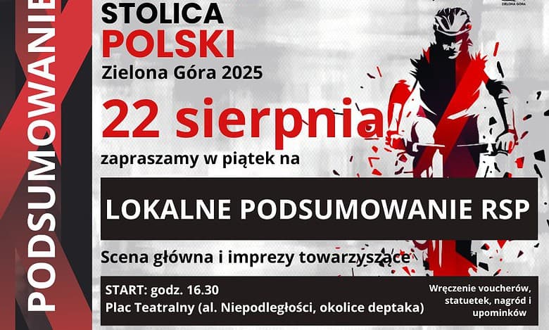 22 sierpnia na Placu Teatralnym odbędzie się lokalne podsumowanie rywalizacji Rowerowa Stolica Polski 2025. Początek wydarzenia zaplanowano na godzinę 16:30.