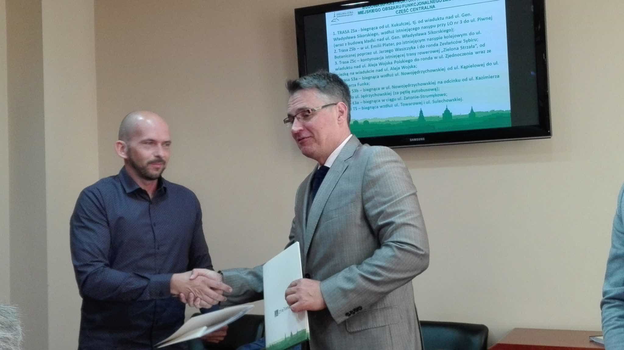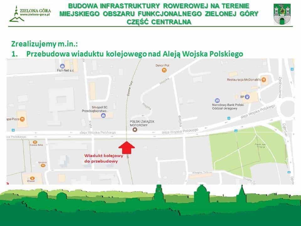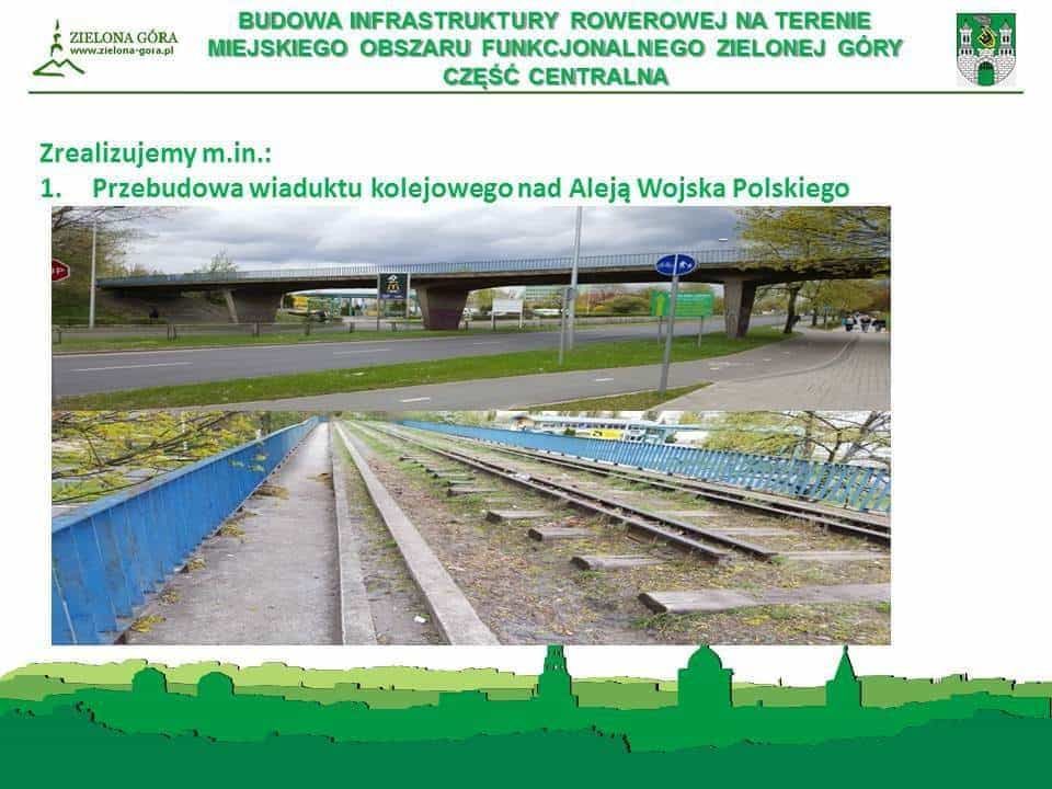 Te elementy, które będą realizowane, to jest siedem odcinków. Mają połączyć to, co w Zielonej Górze funkcjonuje do tej pory. Zielona Strzała kończyła się przed wiaduktem na Wojska Polskiego. Ten wiadukt wreszcie zostanie przebudowany, Zielona Strzała pomknie dalej. Drugi z elementów – po lewej stronie kończy się ścieżka rowerowa. Ona pójdzie dalej, będzie dochodziła do Trasy Aglomeracyjnej. Kolejna przebudowa to jest wiadukt, który został rozebrany. Kiedyś był wiaduktem kolejowym. Teraz będzie to kładka rowerowa – na ulicy Sikorskiego.Janusz Kubicki