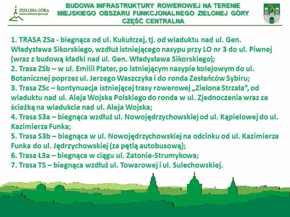 Połączy ponad 15 istniejących i projektowanych dróg dla rowerów. Połączy się też z wielkimi inwestycjami na północy i na południu miasta. Na północy będziemy mogli dojechać aż do Cigacic, do mostu nad Odrą. Na południu będziemy mogli skorzystać z dróg dla rowerów, które połączą Raculę, Drzonków, Kiełpin, Ochlę czy też Zatonie i Marzęcin.Robert Górski