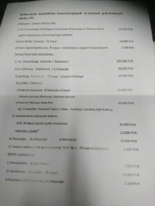 Poniżej prezentujemy listę radnych z propozycjami dofinansowań.