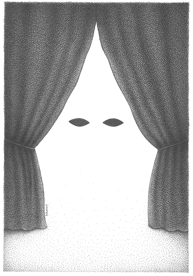 Doskonale tutaj to widać, że tematy krążą wokół takich rekwizytów jak kurtyna i tak dalej. Żeby od tego troszeczkę odejść, wymaga to pewnego wysiłku intelektualnego. Zawsze przypomina mi się konkurs o Chopinie. Wydaje się, że zęby w kształcie klawiatury fortepianu to nie wiadomo co. Podobno co druga praca była właśnie w ten sposób namalowana. Jedno, co mogę powiedzieć na pocieszenie: temat jest tak nośny kulturowo, jest tak pojemną metaforą – teatr jako życie i tak dalej, że wystarczyło tylko siąść, wziąć ołówek i rysować.Maciej Trzepałka, rysownik, zdobywca nagrody specjalnej konkursu