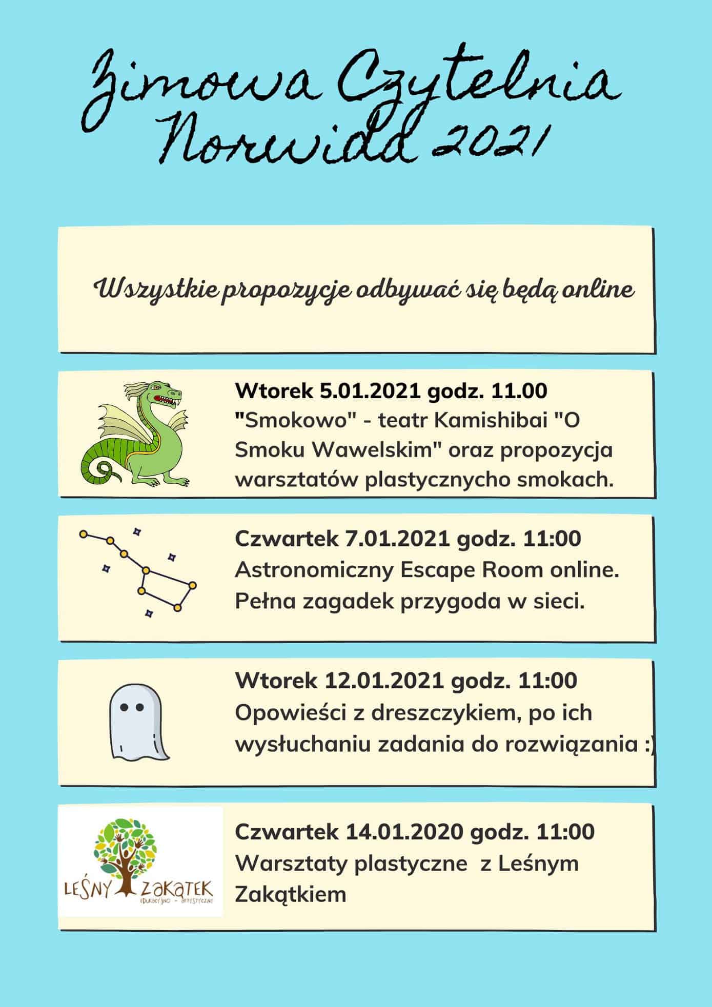 Zajęcia będą odbywać się oczywiście w internecie, na stronie Zimowej Czytelni Norwida w mediach społecznościowych.