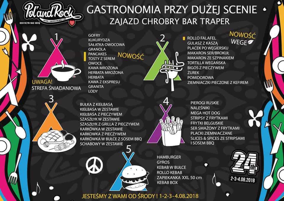 Stoiska gastronomiczne ruszą we wtorek. Festiwalowy sklep zostanie otwarty w poniedziałek, 30 lipca o 12:00 i będzie czynny do 20:00. W kolejnych dniach (aż do 5 sierpnia, do godz. 12:00) zakupy będzie można zrobić przez całą dobę. Oprócz produktów spożywczych i napojów, w sklepie znajdziecie także wiele przedmiotów, które mogą okazać się niezbędne w czasie festiwalu m.in. namioty, karimaty czy śpiwory. Na festiwalowych stoiskach możecie zapłacić: kartą płatniczą, w tym kartą zbliżeniową (m.in.MasterCard, Maestro), gotówką, Blikiem i telefonem. Na terenie Festiwalu znajdują się 4 bankomaty. Ofertę gastronomiczną znajdziecie na poniższym zdjęciu: