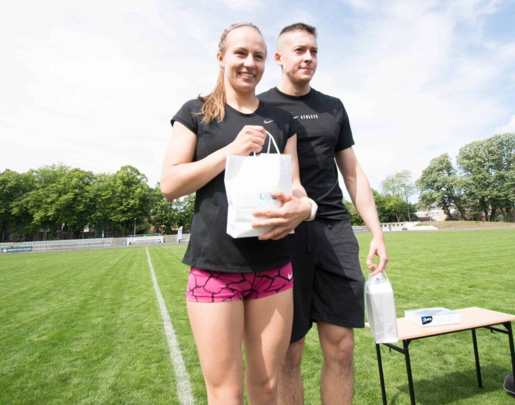W tegorocznej edycji biegu można było wystąpić indywidualnie, ale także… w parach. Duet biegł związany za dłonie szarfą lub szalikiem Falubazu, co praktykowały studentki kierunku lekarskiego: Oliwia i Marysia.